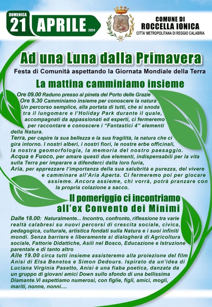 In vista della 54° Giornata Mondiale della Terra, il comune di Roccella Jonica (RC) ospiterà domenica 21 aprile, per un’intera giornata, una festa comunitaria che coinvolgerà grandi e piccoli e celebrerà i temi della salvaguardia del Pianeta, della tutela della biodiversità, delle risorse naturali e del patrimonio storico e archeologico coniugandoli con i valori dello sport, del gioco, della solidarietà, dell’inclusione e della pace.