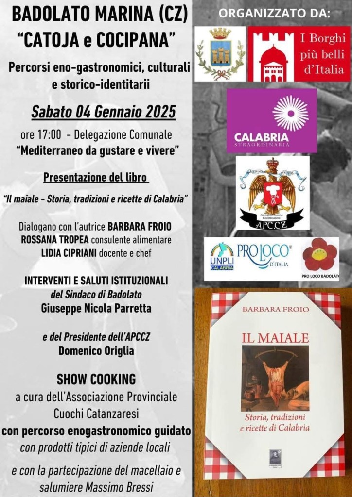 Alle ore 17:00, presso la Delegazione Comunale, si svolgerà l’evento “Catoja e Cocipana”, un viaggio tra i sapori, la cultura e le identità calabresi.