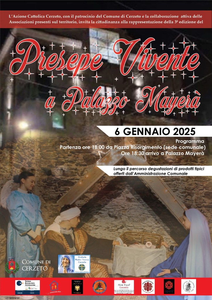 Si è svolta ieri sera la presentazione del Presepe Vivente presso Palazzo Mayerà, un evento organizzato dall’Azione Cattolica Cerzeto, patrocinato dal Comune di Cerzeto e con la Collaborazione dell’Associazioni del territorio che ha visto la partecipazione di rappresentanti di diverse etnie del mondo.