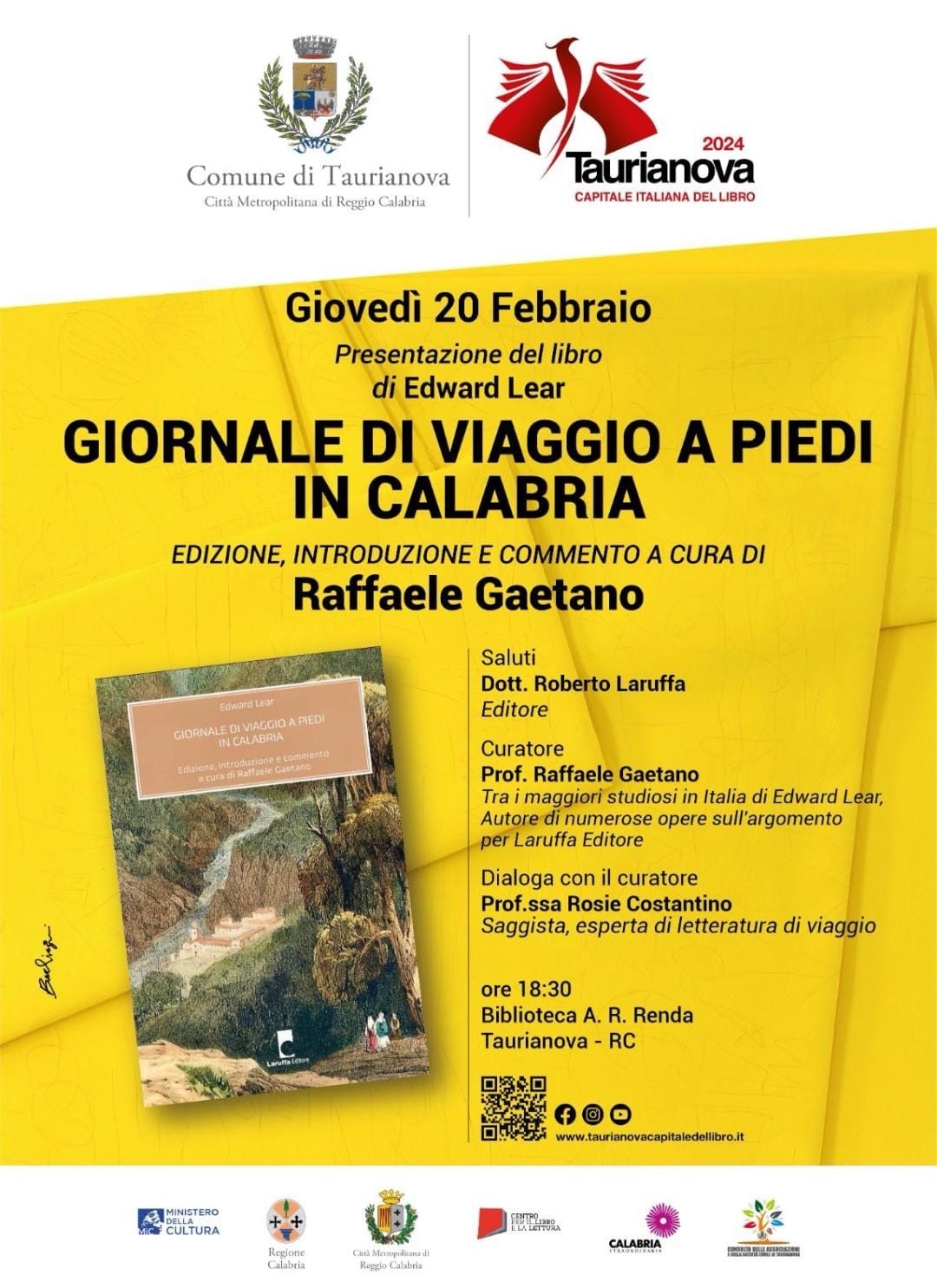 Taurianova, Capitale Italiana del Libro 2024, si prepara ad accogliere un evento di grande rilievo culturale: la presentazione dell’opera di Edward Lear Giornale di viaggio a piedi in Calabria, con edizione, introduzione e commento a cura del professor Raffaele Gaetano. L’incontro si terrà giovedì 20 febbraio alle ore 18:30 presso la Biblioteca A. R. Renda.