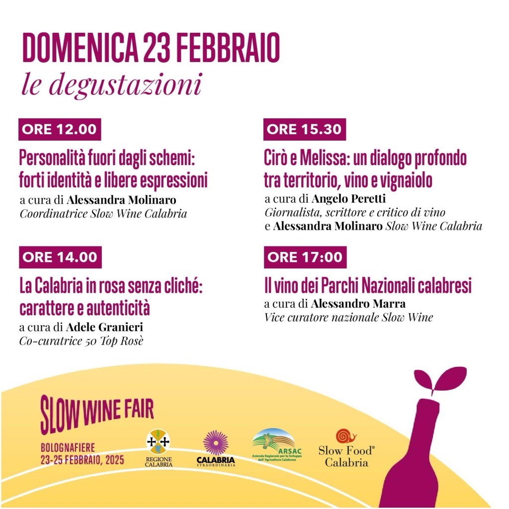 La partecipazione calabrese, promossa da Slow Food, Regione Calabria, ARSAC e Calabria Straordinaria, sarà un’occasione per valorizzare i vitigni autoctoni e i metodi di produzione rispettosi dell’ambiente. Un racconto fatto di storia, tradizione e innovazione, capace di esprimere l’identità di una terra dove la viticoltura ha radici antiche ma guarda al futuro con crescente consapevolezza.