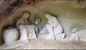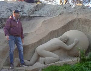 Si tratta delle opere scultoree di Vincenzo Baldissarro. Questo diletto figlio di Calabria è riuscito, con soli scalpello e martello, a trasferire le sue emozioni e la sua incomparabile arte all’esterno e anche all’interno di un’enorme roccia. Ci troviamo di fronte a dei capolavori destinati a diventare immortali, forse un po’ come eterni testimoni di un mondo dove mitologia e realtà giornaliere si sposano per dare continuità a ciò che estro, fantasia e volontà riescono, attraverso la miracolosa mano di un uomo, a realizzare.