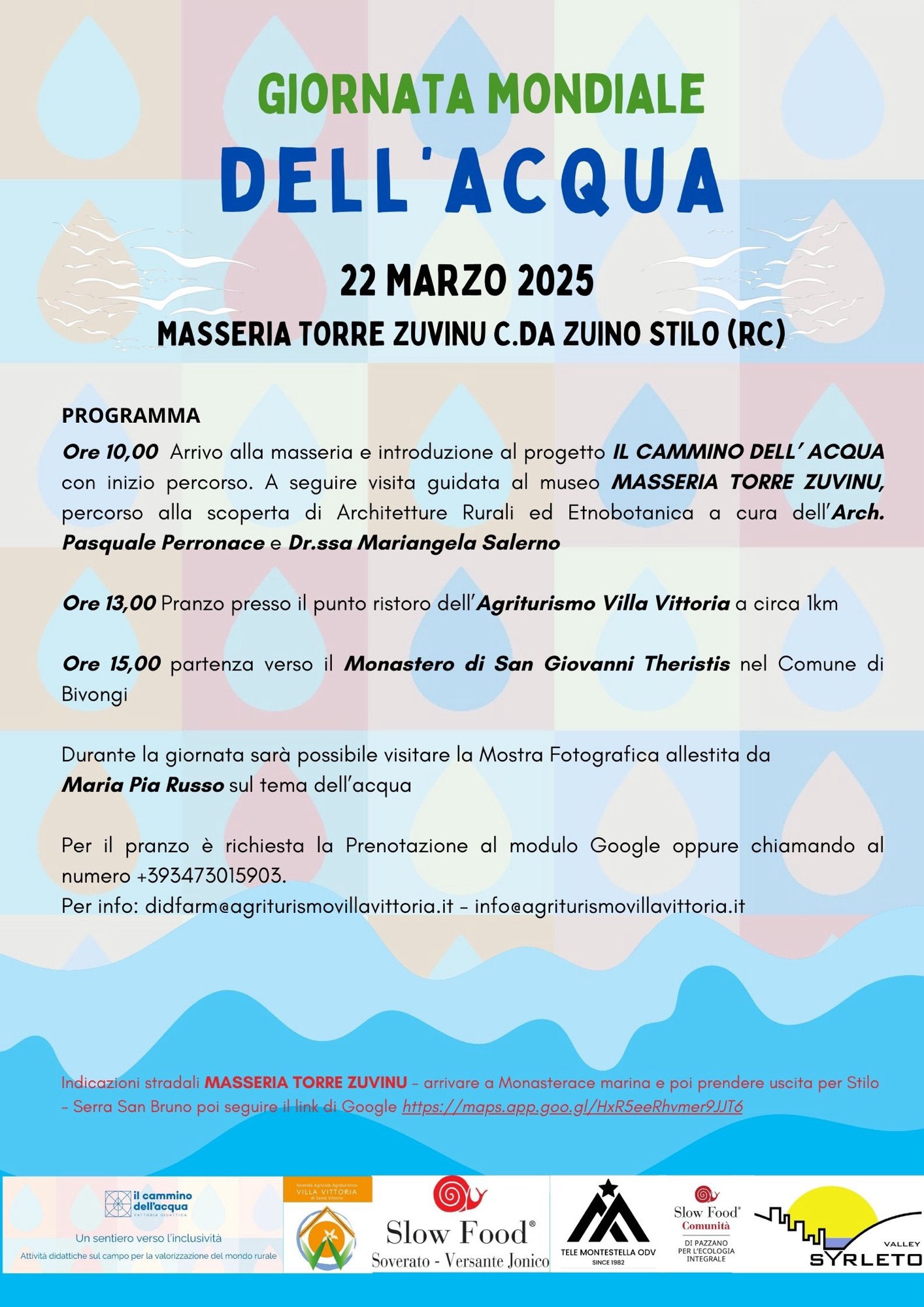 Il 22 marzo 2025, in occasione della Giornata Mondiale dell’Acqua, si terrà un evento speciale alla Masseria Torre Zuvinu in località Contrada Zuino, Stilo (RC). Una giornata dedicata alla riscoperta dell’acqua come elemento vitale per il territorio, attraverso percorsi naturalistici, storia, architettura rurale ed etnobotanica.