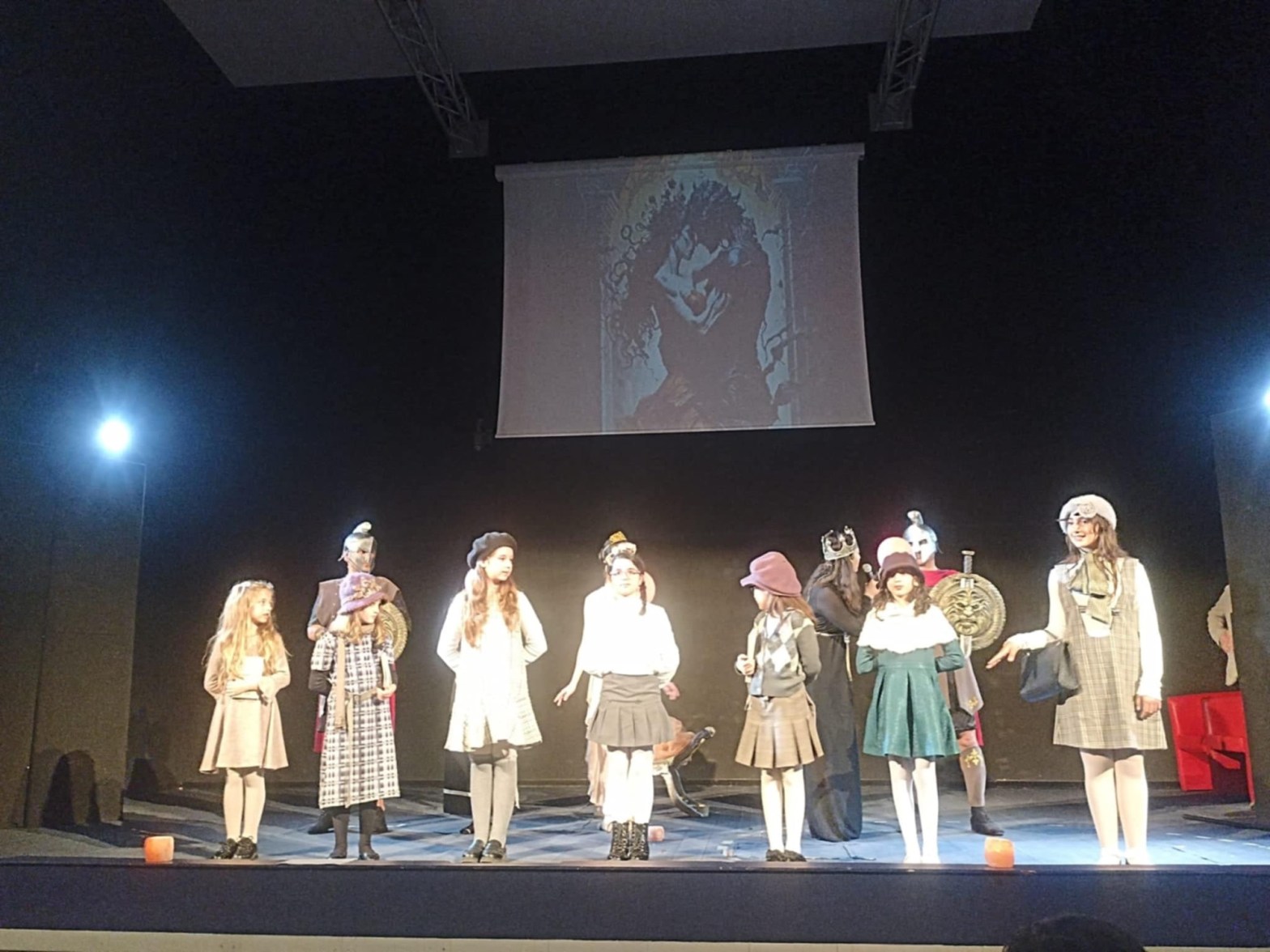 Nella splendida cornice del moderno e accogliente teatro del Centro della Cultura del Comune di Locri, davanti a un numerosissimo pubblico attento e interessato, il gruppo di teatro-danza capitanato dalla Maestra Roberta Franco — nell’occasione nella duplice veste di regista e attrice — con l’ausilio del regista e maestro di recitazione Nucci Hyeraci di Roma, del suo collaboratore scolastico Pietro Commisso e delle sue bellissime e bravissime allieve, tra le quali primeggia la giovanissima e pluripremiata Syria Ierino, che a soli 15 anni ha raggiunto il prestigioso e invidiabile titolo di campionessa mondiale di danza classica, ha portato in scena uno spettacolo memorabile.
