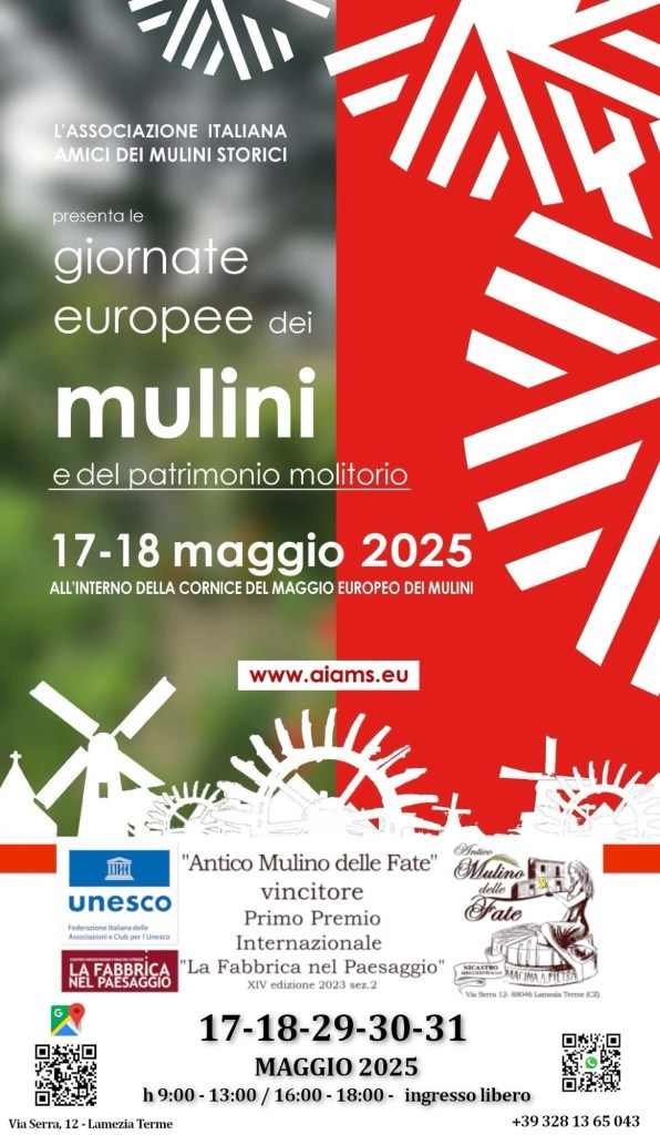 Anche quest’anno, l’Antico Mulino delle Fate — regno incantato della Fata Gelsomina — sarà tra i pochi luoghi del Sud Italia a prendere parte alle Giornate Europee dei Mulini Storici, rappresentando con orgoglio e amore la nostra amata Regione Calabria, per il quarto anno consecutivo.