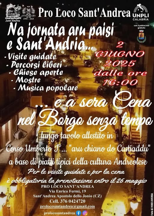 La manifestazione è promossa dalla Pro Loco di Sant’Andrea, in collaborazione con l’UNPLI Calabria e con il patrocinio dell’Amministrazione Comunale, con l’intento di riscoprire l’identità andriese attraverso il coinvolgimento attivo della comunità.