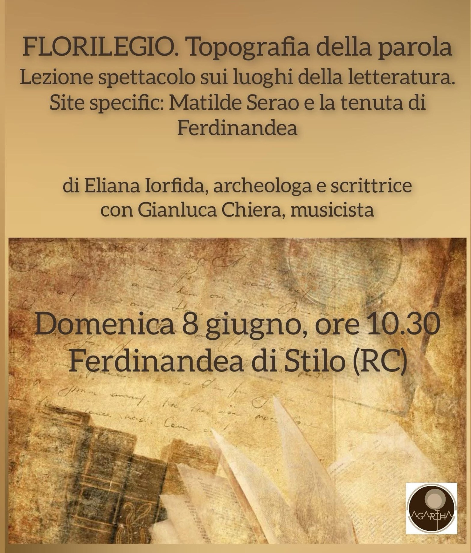 È da questa suggestione che nasce FLORILEGIO ~ Topografia della parola, la nuova lezione spettacolo ideata dall’associazione AGARTHA, che debutterà domenica 8 giugno alle ore 10:30 nella suggestiva cornice dell’ex tenuta borbonica Ferdinandea di Stilo (RC). L’iniziativa si inserisce all’interno della giornata “Storie di Ferdinandea”, promossa dalle istituzioni locali in collaborazione con Trekking Stilaro Experience, che si ringrazia per l’invito e la sinergia.