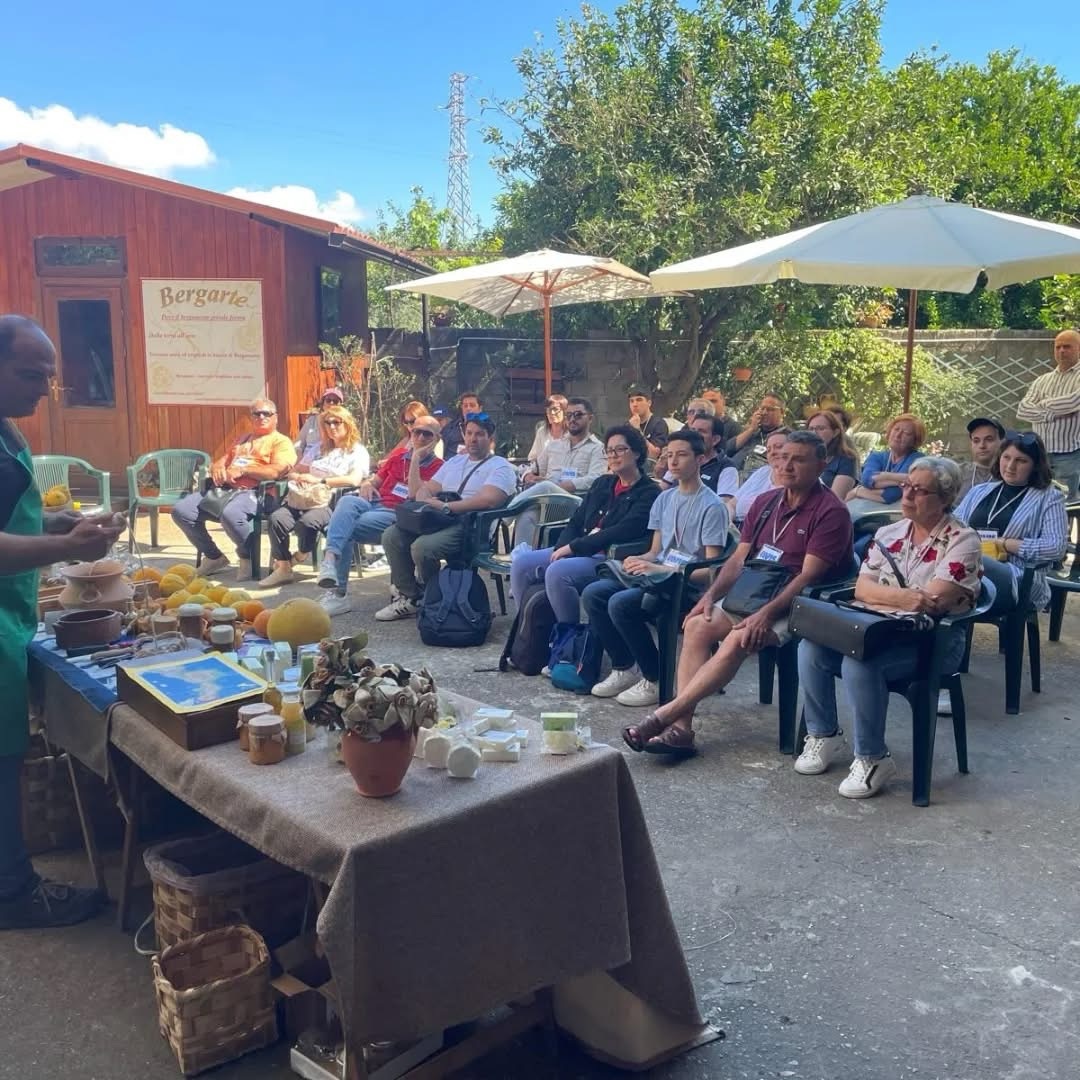 La prima tappa del viaggio ha condotto i partecipanti presso l’azienda Bergarte di Varapodio, realtà d’eccellenza specializzata nella lavorazione del bergamotto. Qui, i donatori hanno potuto vivere un’esperienza sensoriale e informativa, tra i profumi agrumati del laboratorio, i racconti sulle tecniche di produzione e una ricca degustazione di prodotti tipici che hanno celebrato le radici e le tradizioni della nostra terra.