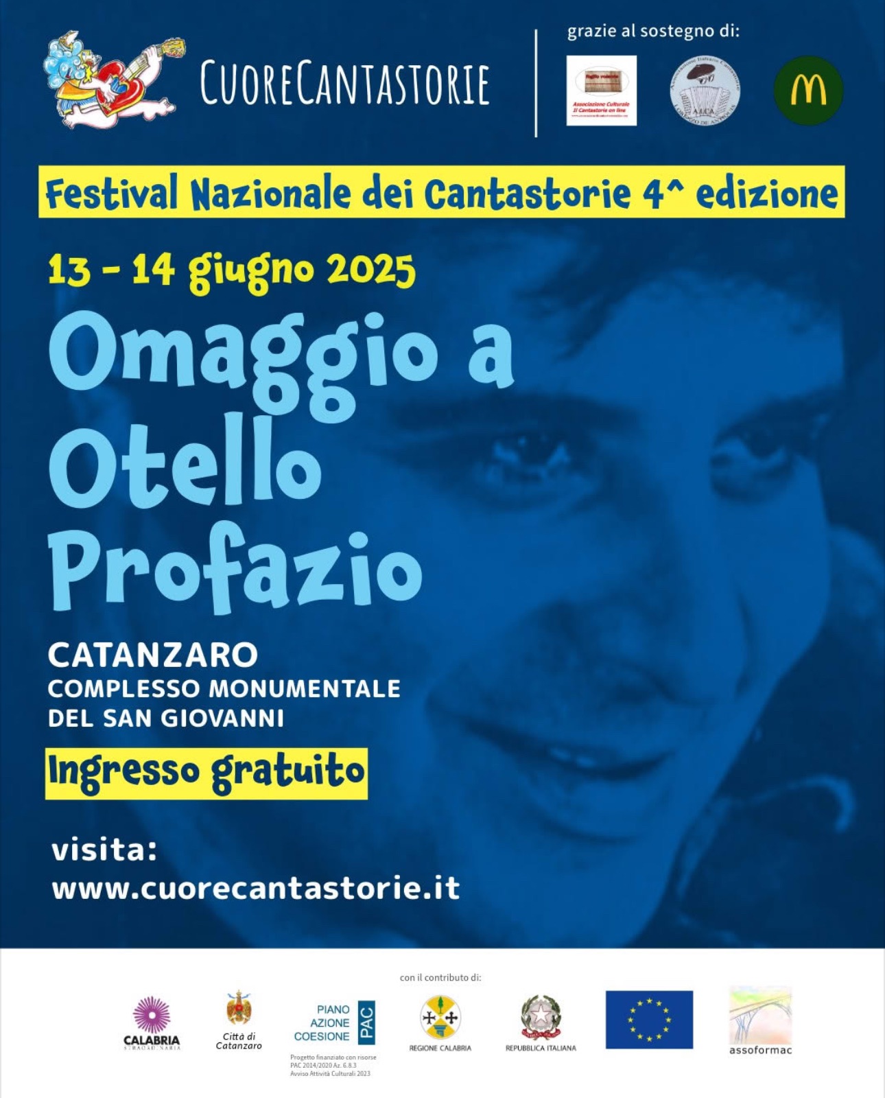 Il 13 e 14 giugno 2025, Catanzaro ospita la quarta edizione del Festival Nazionale Cuore Cantastorie, interamente dedicato alla musica e alle tradizioni popolari, con un tocco speciale: il tributo a Otello Profazio, scomparso nel luglio 2023. L’evento, gratuito e aperto a tutti, si svolgerà nel suggestivo Complesso monumentale San Giovanni, cuore pulsante della cultura cittadina .