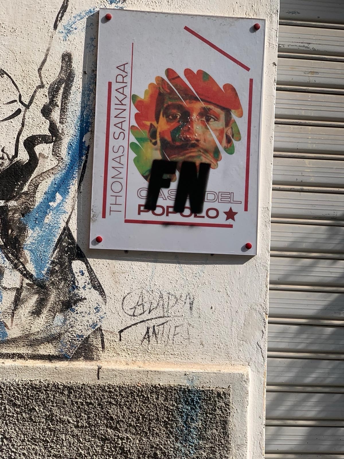 Nella giornata del 14 giugno la sede della Casa del Popolo Thomas Sankara di Catanzaro è stata imbrattata con simboli dell’organizzazione neofascista Forza Nuova.