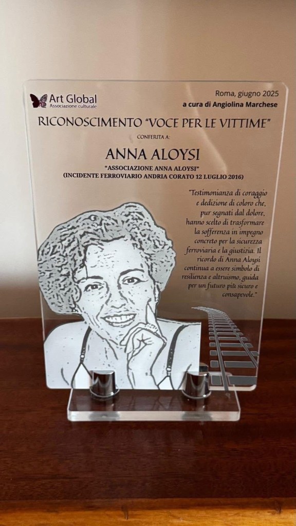 12 LUGLIO 2025 ANNIVERSARIO DELLA TRAGEDIA. Io Anna Aloysi, sorella di MARIA che perse la vita nel disastro ferroviario del 12 luglio 2016 e presidente dell’associazione Anna Aloysi Incidente Ferroviario Andria-Corato 12 luglio 2016, ricordo il dolore che ancora provo, sembra che il tempo non sia mai passato.