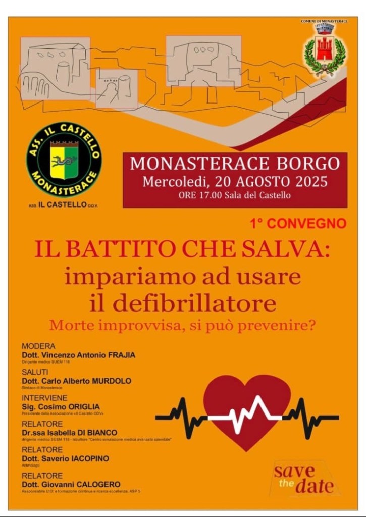 La vigilia dell’evento, oggi 20 agosto, è stata dedicata a un incontro di grande valore sociale: nella sala conferenze del Castello al Borgo si è tenuto un convegno con medici e tecnici specialisti sull’uso del defibrillatore (DAE), strumento indispensabile in caso di arresto cardiaco.