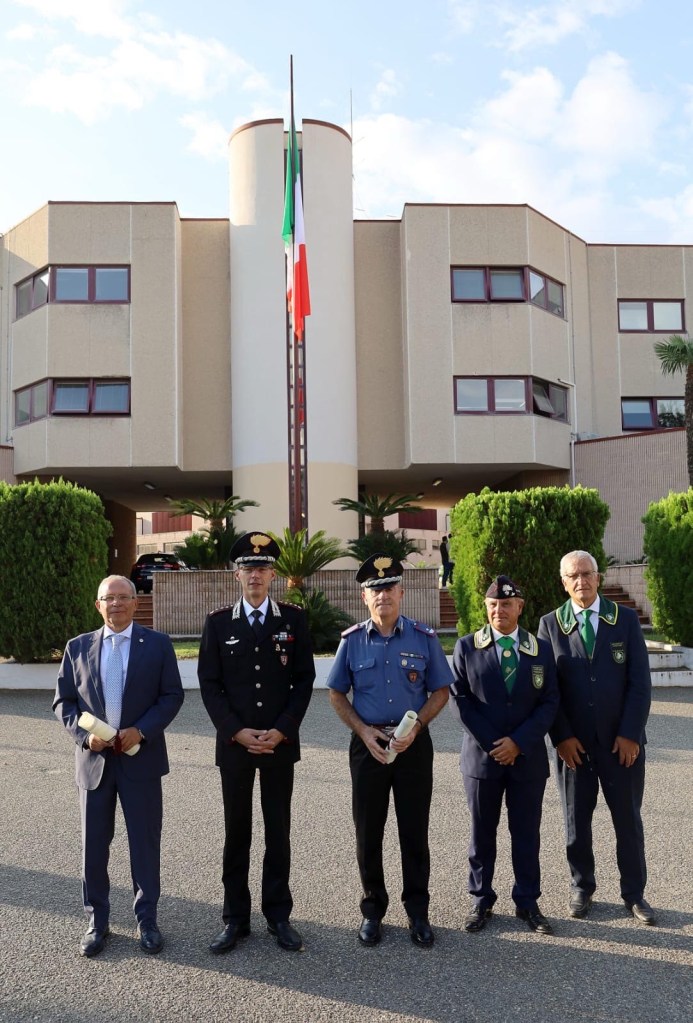 Solenne e sobria cerimonia a Reggio Calabria, in Piazza d’Armi del Comando della Scuola Allievi Carabinieri, davanti al Battaglione della caserma schierato per l’alzabandiera e per il conferimento dell’onorificenza. Il Colonnello Enrico Pigozzo, Comandante dell’Istituto di formazione, insieme al Capitano Cosimo Sframeli, Presidente dell’Associazione “Nastro Verde” – Sezione Calabria, e al Dott. Filippo Piccione, Socio del “Nastro Verde”, ha consegnato il diploma della Medaglia d’Oro Mauriziana al Magg. CC Arcangelo Minei e al Lgt C.S. CC Rosario Malara, che si sono distinti per la lodevole e meritevole condotta durante il servizio d’istituto prestato a difesa della Legge e delle Istituzioni dello Stato, per la gente e con la gente.