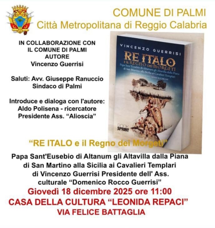 Vincenzo Guerrisi, di Polistena, presidente dell’Associazione culturale Domenico Rocco Guerrisi, studioso e ricercatore, dopo la monografia “Altanum. Polistena territorio degli Italo-Morgeti”, ha pubblicato per BookSprint Edizioni il volume “Re Italo e il Regno dei Morgeti. Papa Sant’Eusebio di Altanum, gli Altavilla dalla Piana di San Martino alla Sicilia, ai Cavalieri Templari”.