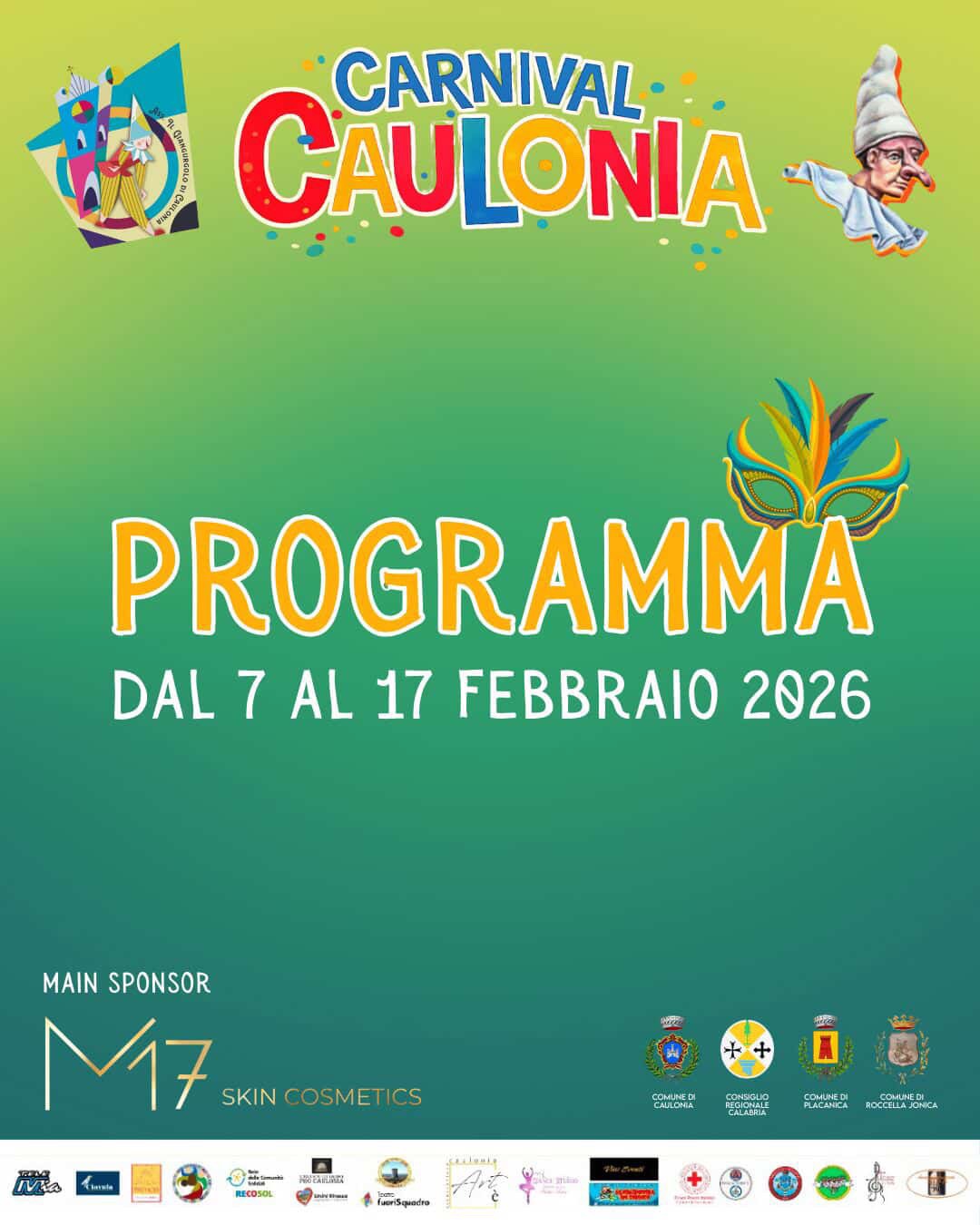 Il Carnevale di Caulonia 2026 è realizzato con il contributo delle istituzioni: Comune di Caulonia, Comune di Roccella Jonica, Comune di Placanica e Consiglio Regionale della Calabria. Lo sponsor ufficiale della manifestazione è M7 Skin Cosmetics.