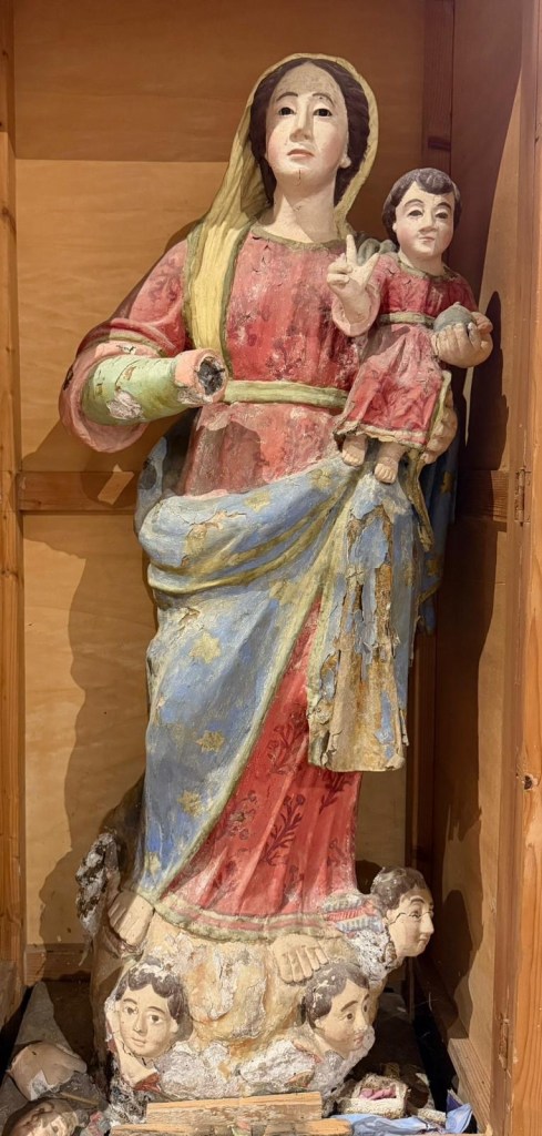Per lungo tempo, questa statua è rimasta quasi nascosta, passata inosservata agli occhi di molti e considerata una presenza secondaria all’interno della chiesa. Oggi, però, grazie all’intervento della Soprintendenza e all’impegno del dottor Giuseppe Mantella, prende avvio un importante lavoro di recupero: stanziati 15 mila euro per un restauro già iniziato, che si concluderà entro circa 160 giorni, orientativamente alla fine di luglio.
