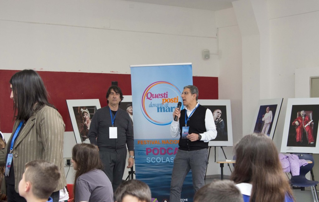 Grande partecipazione anche per il workshop “Podcast in classe”, condotto da Celestino Rossi nella Sala Esposizione del Palazzo della Cultura. Gli studenti hanno imparato che cosa sia un podcast, come si costruisce e quale ruolo abbia oggi nella comunicazione contemporanea. Dopo una riflessione sulla nascita del podcast e sulla sua diffusione in Italia, i ragazzi si sono cimentati nella creazione del proprio contenuto audio, rispondendo alle domande “Chi sono?” e “Chi sarò?”. Un esercizio di introspezione e storytelling che li ha portati a passare da semplici ascoltatori a veri autori.