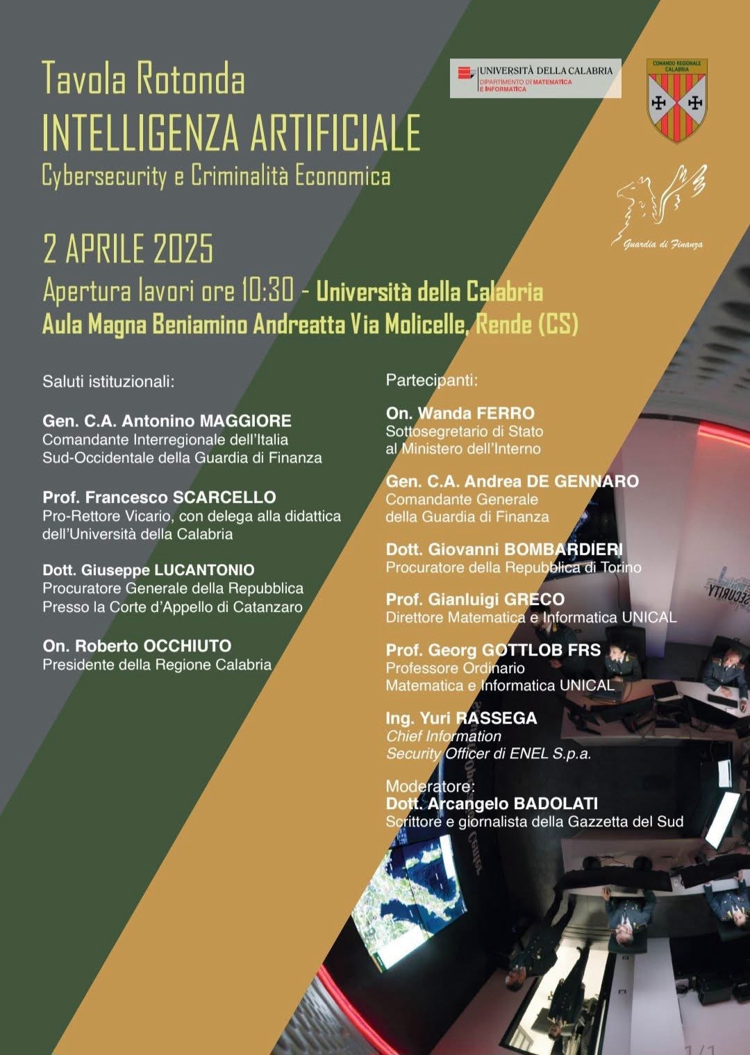 Tavola Rotonda su Intelligenza Artificiale, Cybersecurity e Criminalità Economica all’Università della Calabria