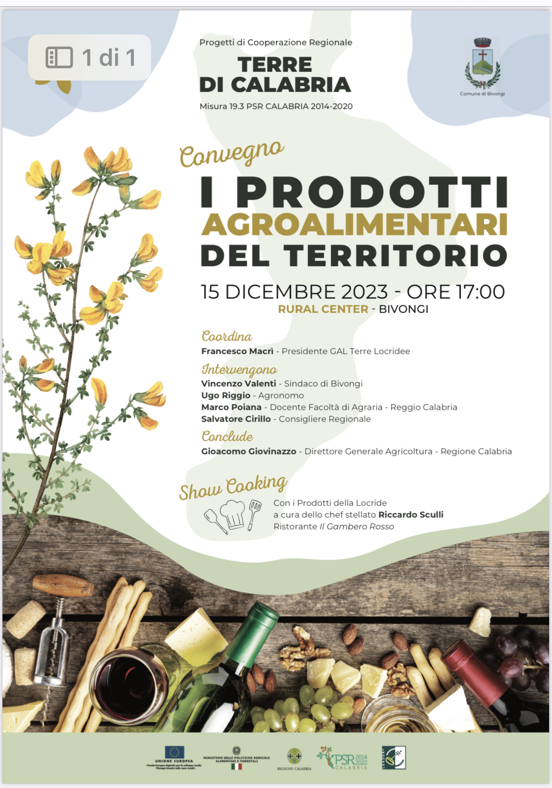 Bivongi (RC): Venerdì 15 dicembre, per il progetto “Terre di Calabria” del Gal Terre Locridee, il convegno “I prodotti agroalimentari del territorio”