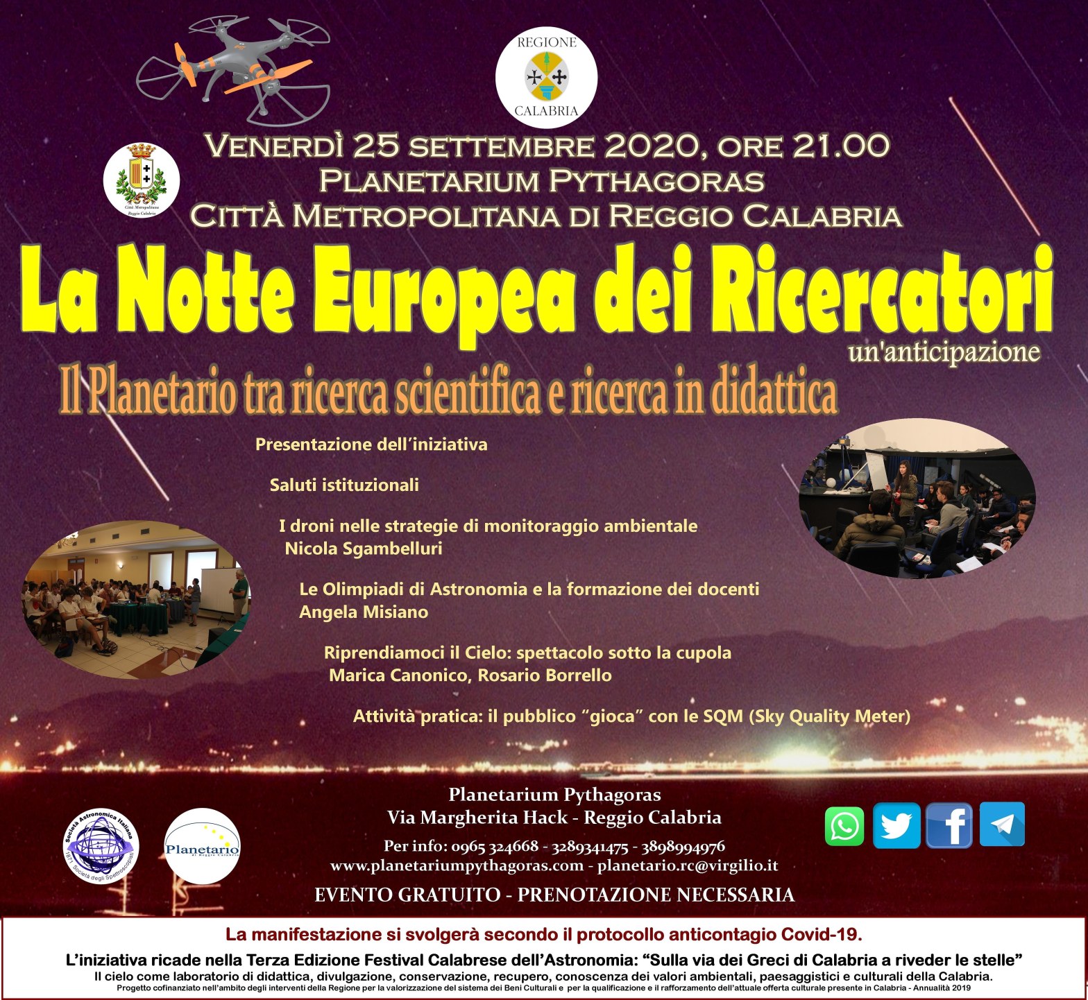 Planetarium Pythagoras di Reggio Calabria Venerdì 25 Settembre 2020, dalle ore 21.00LA NOTTE EUROPEA DEI RICERCATORI 2020