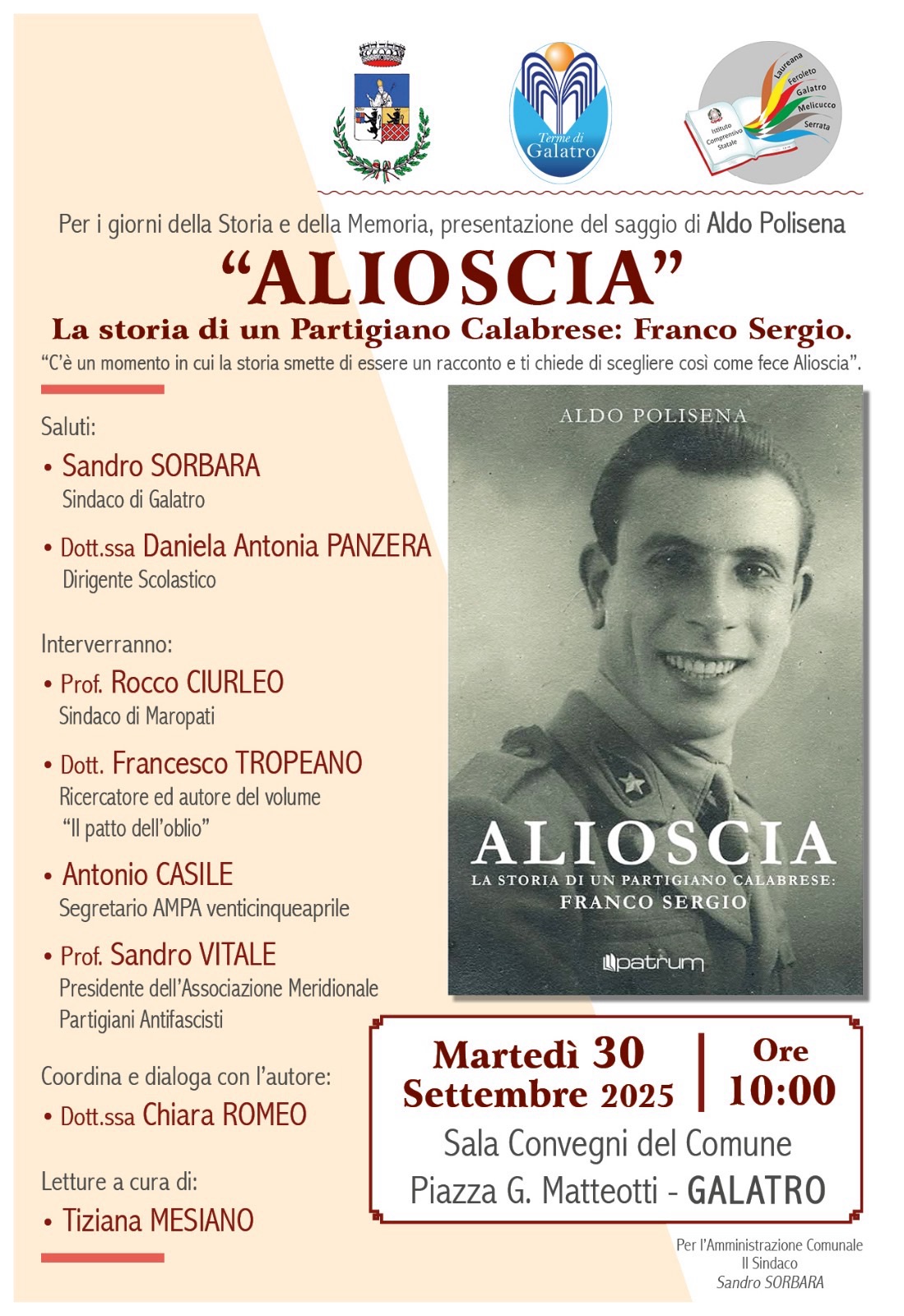La storia di un partigiano calabrese: Franco Sergio detto Alioscia Con il patrocinio dell’Amministrazione Comunale di Galatro e in collaborazione con le Associazioni “AMPA Venticinqueaprile” e “Alioscia”, si è svolto presso la sala convegni del Comune, in Piazza Matteotti, un incontro con gli studenti dell’Istituto Comprensivo Galatro–Feroleto della Chiesa–Laureana di Borrello–Melicucco. Nel corso della mattinataContinua a leggere “Per i “Giorni della Storia e i Giorni della Memoria” presentato a Galatro il saggio di Aldo Polisena”